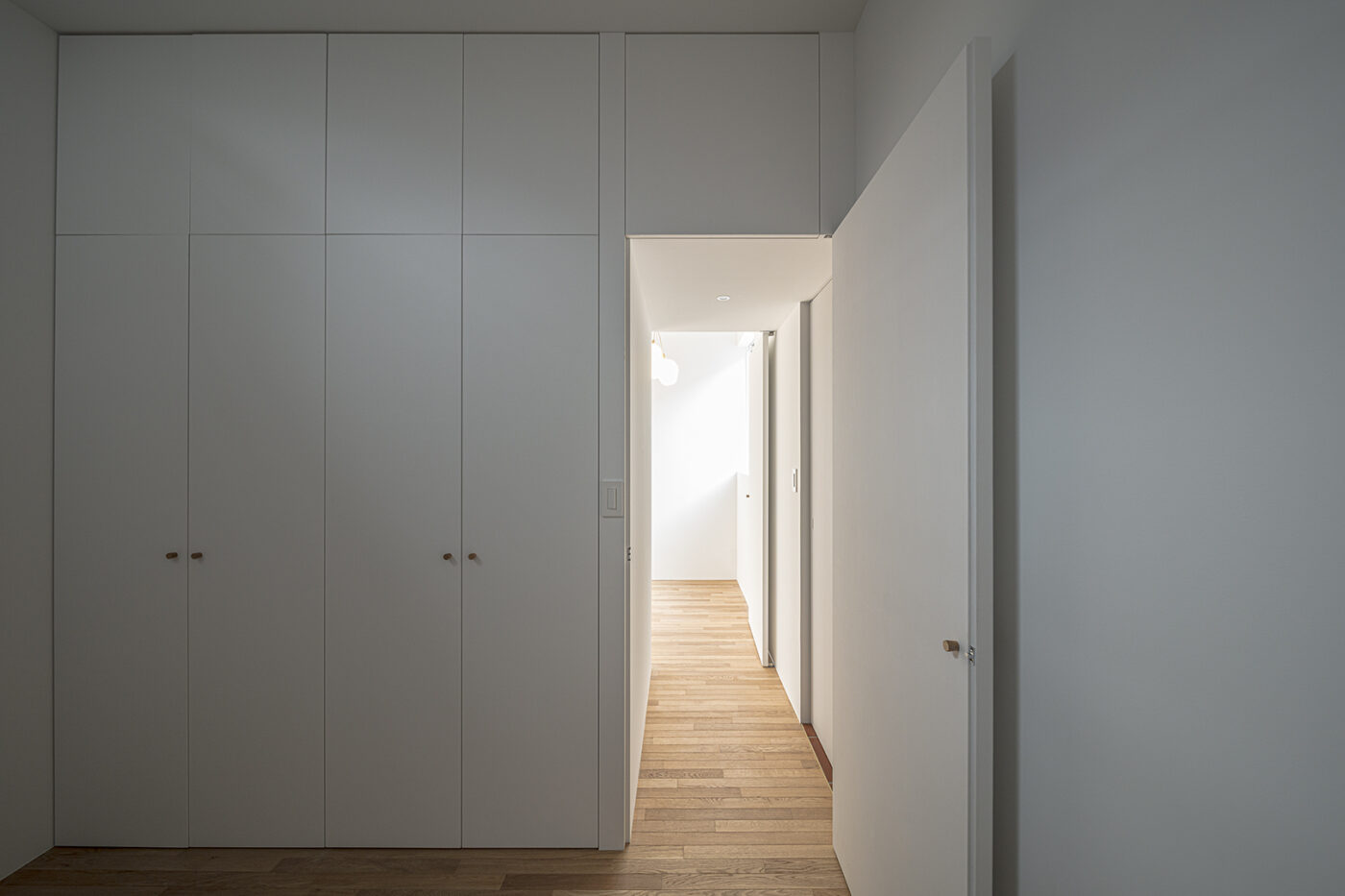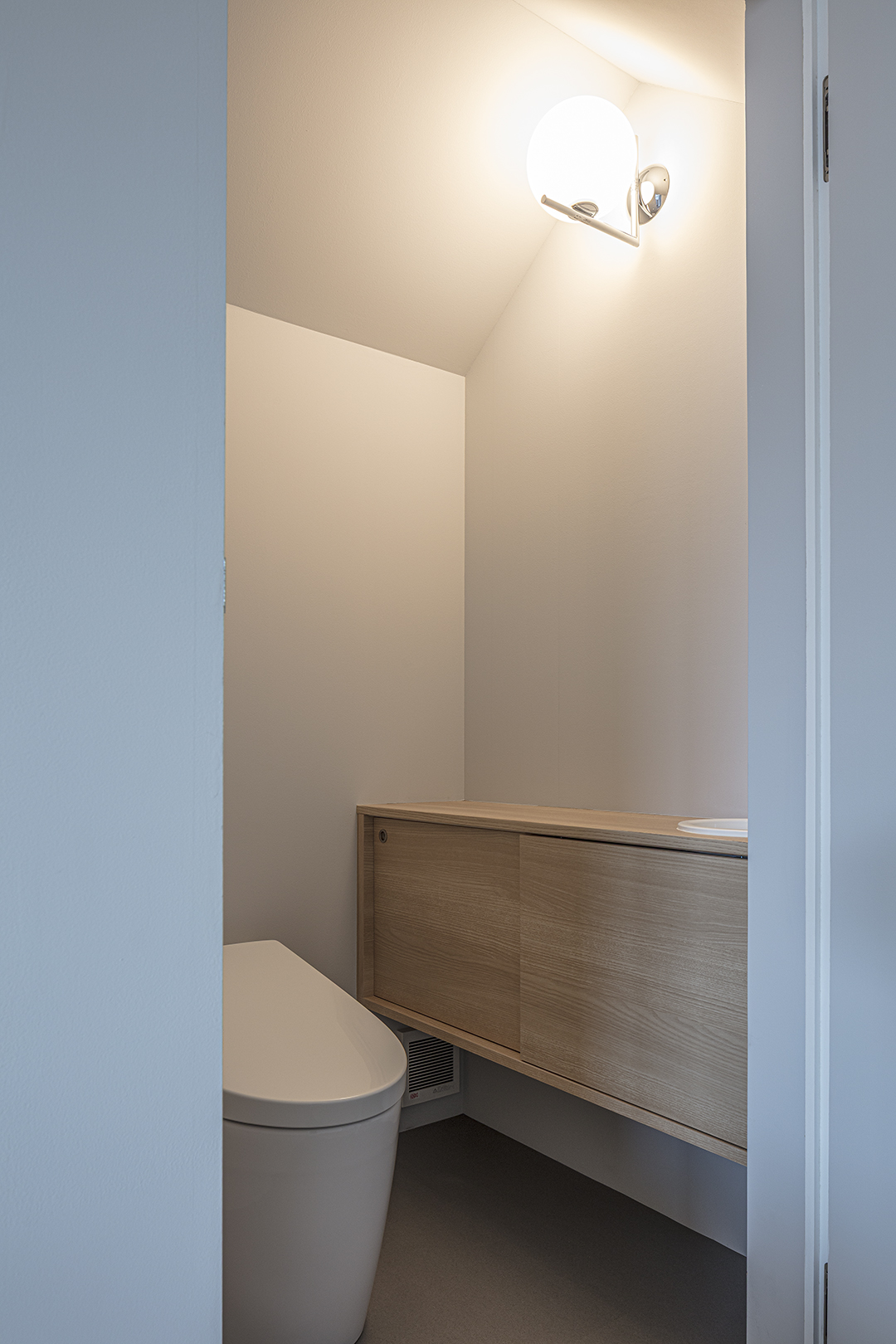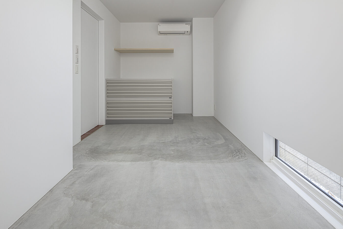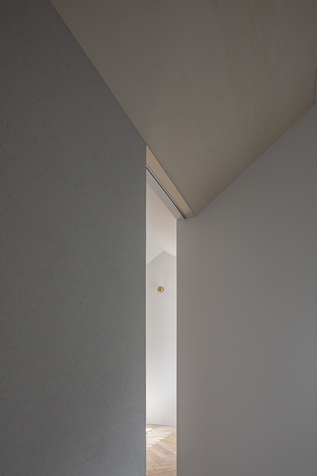 仕事上の来客があるため、1階のエントランス及び動線空間は路地のように感じられる公的なスペースとした。