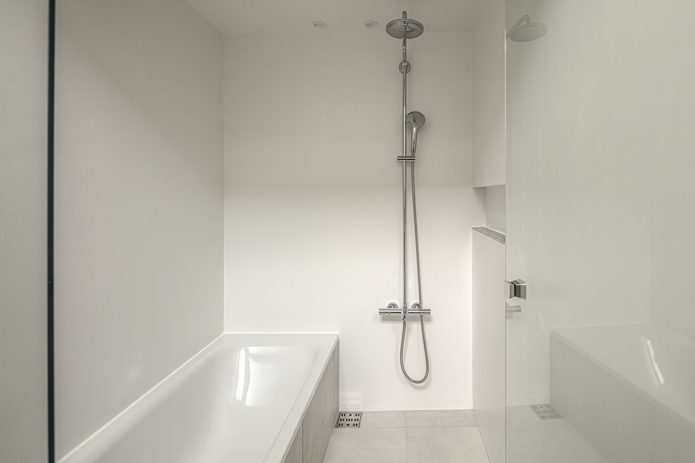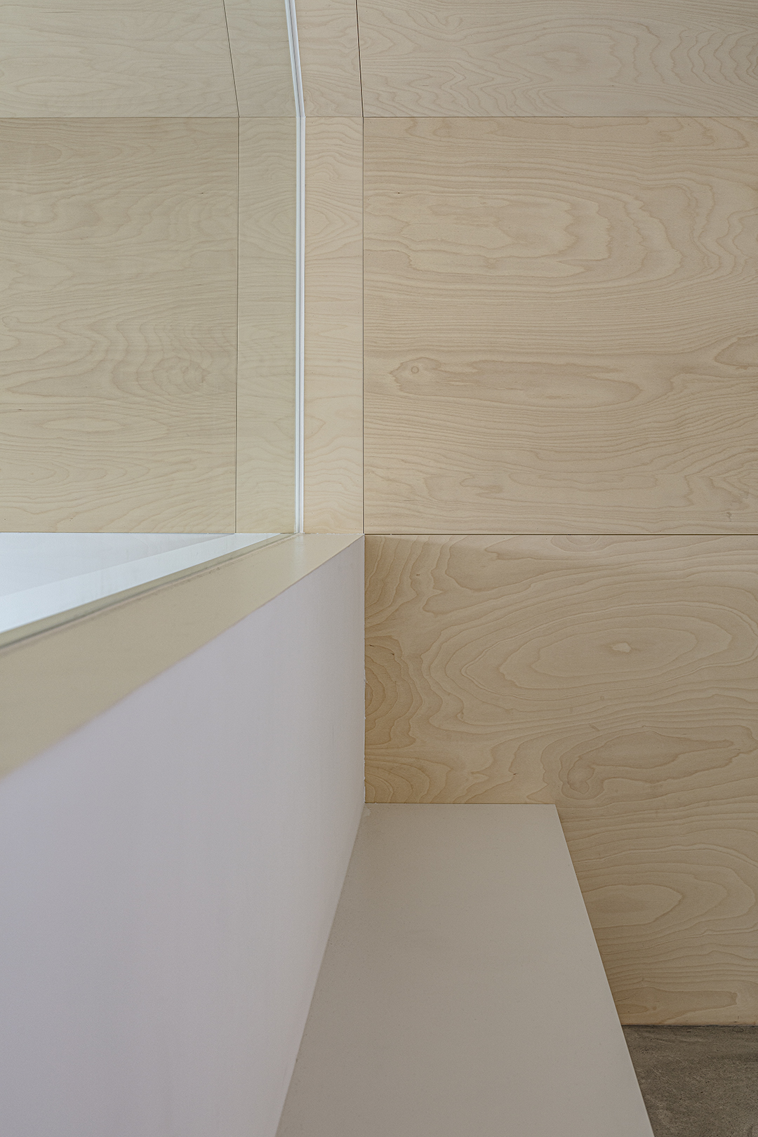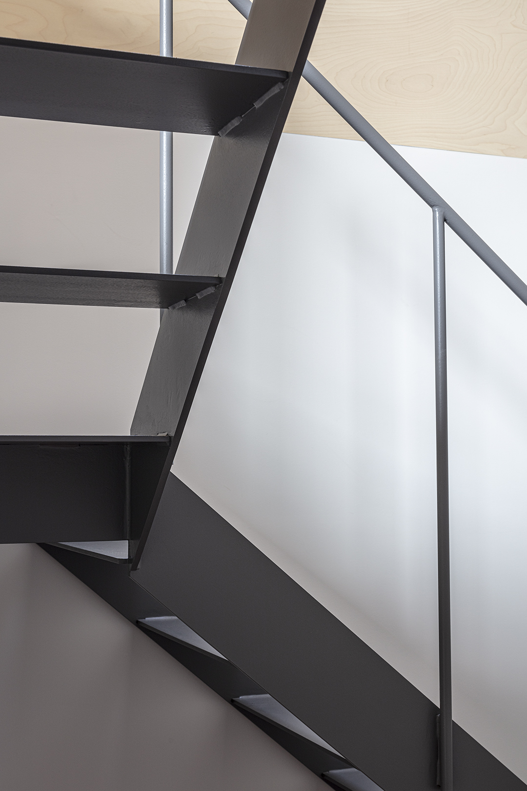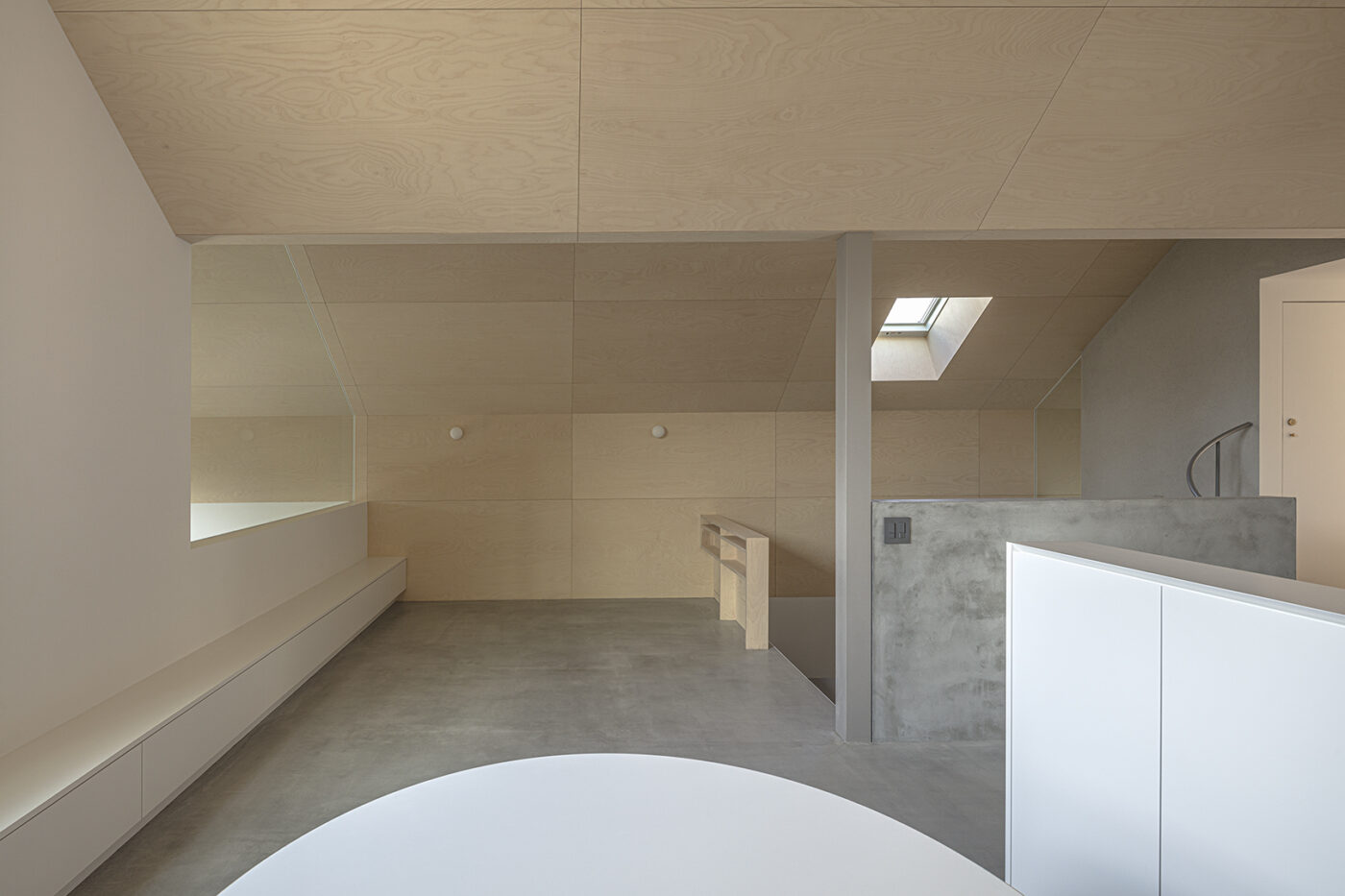 階段室はアトリエの前室であり、トップライトからの光や上階の生活動線が垣間見える余白のような場所でもある。