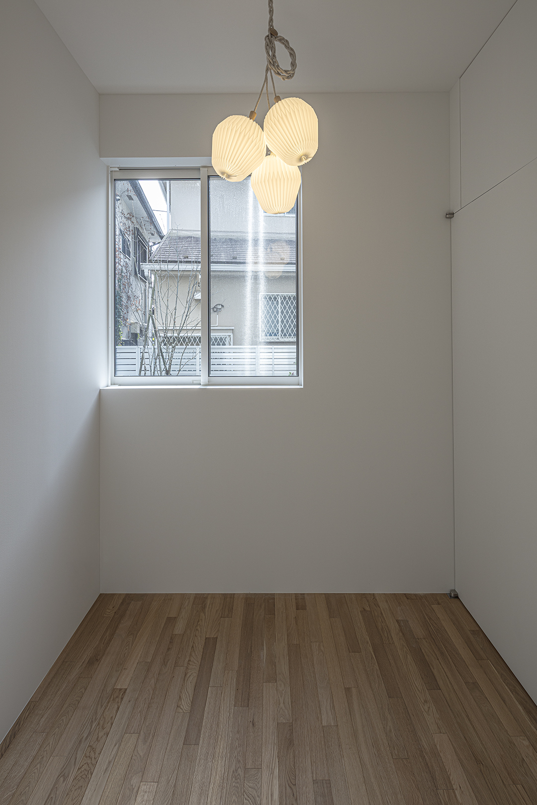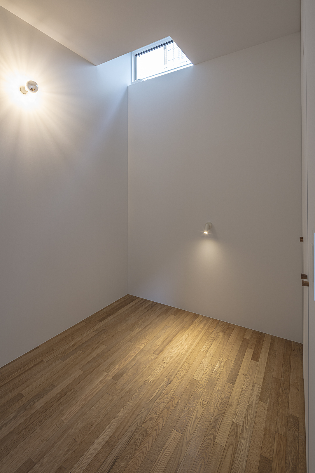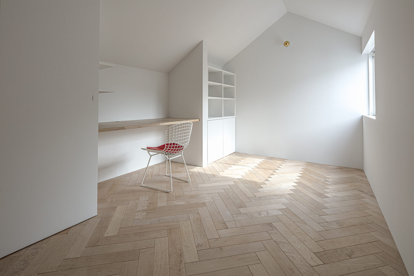 子ども部屋は将来の趣味室的な使い方も想定した。吹き抜けに飛び出た1/4螺旋階段を2段上がることにより距離感が生まれ、離れのような趣のある部屋となった。