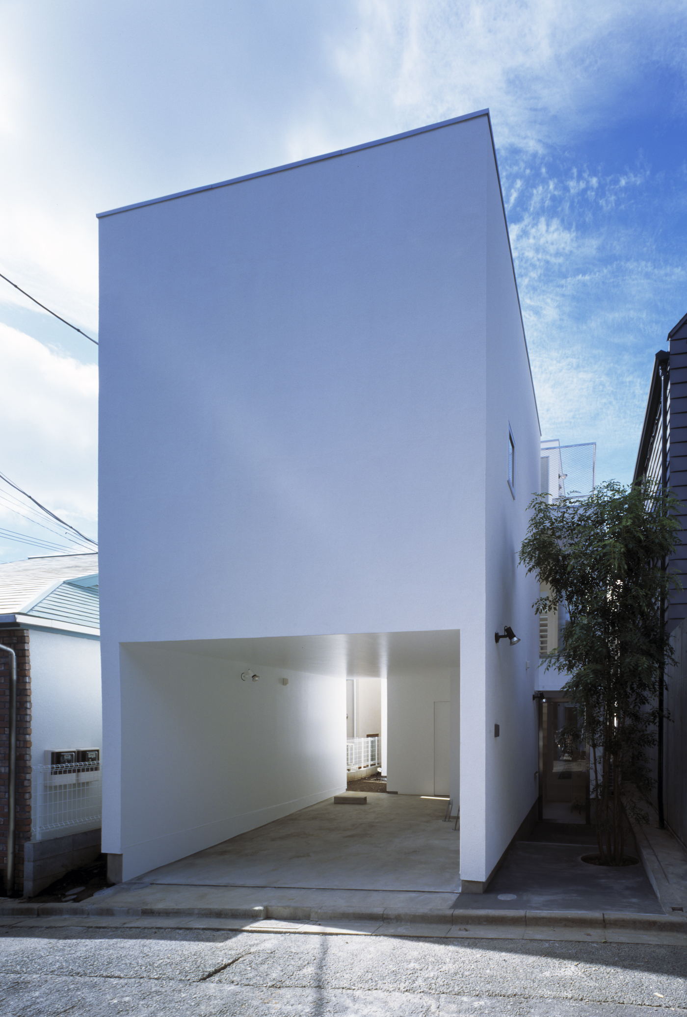 世田谷区の住宅地に建つ3人ご家族のための住宅。ミニ開発で区画された敷地は間口6m×奥行き15m。南北に細長いために隣地との距離を確保しにくい状況の中、どのように良好な居住環境を実現させるかがテーマだった。北面側の敷地奥の住空間にまで光が行き届き、家全体を心地よい環境とするには?